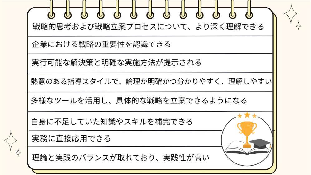 以下は、受講者の皆様から寄せられた率直なご感想です。