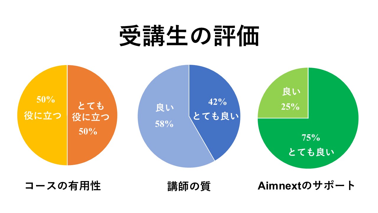 研修後アンケートの結果は、受講者の高い満足度と本プログラムへの信頼を最も明確に示すものとなっています。