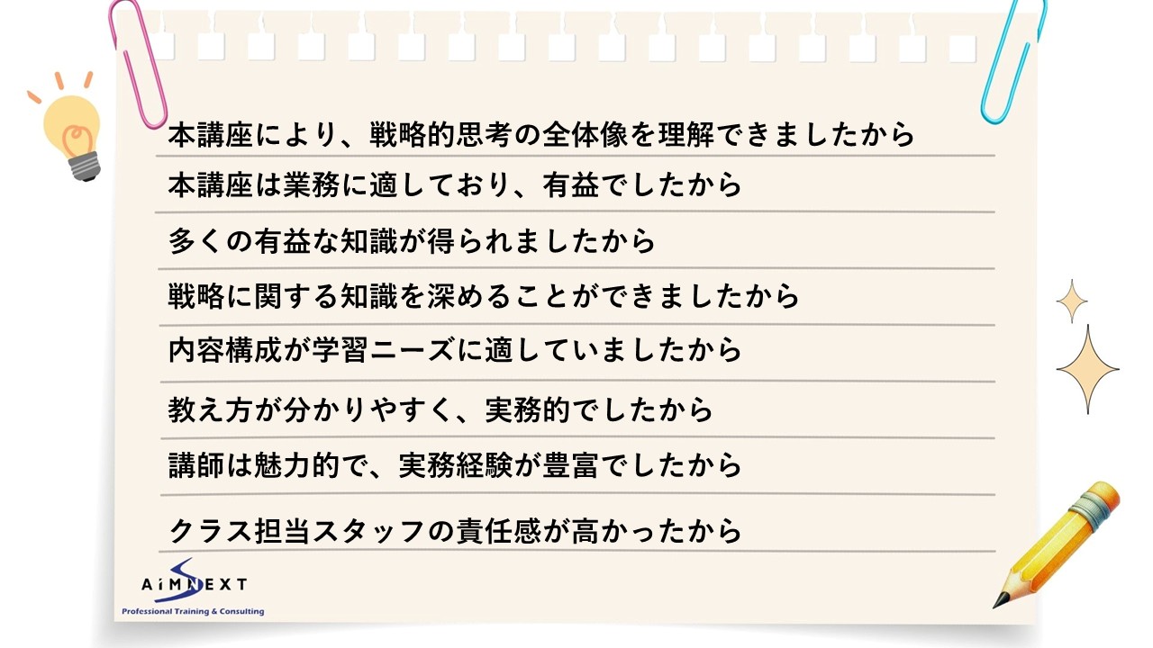 以下は、受講者の皆様から寄せられた率直なご感想です。
