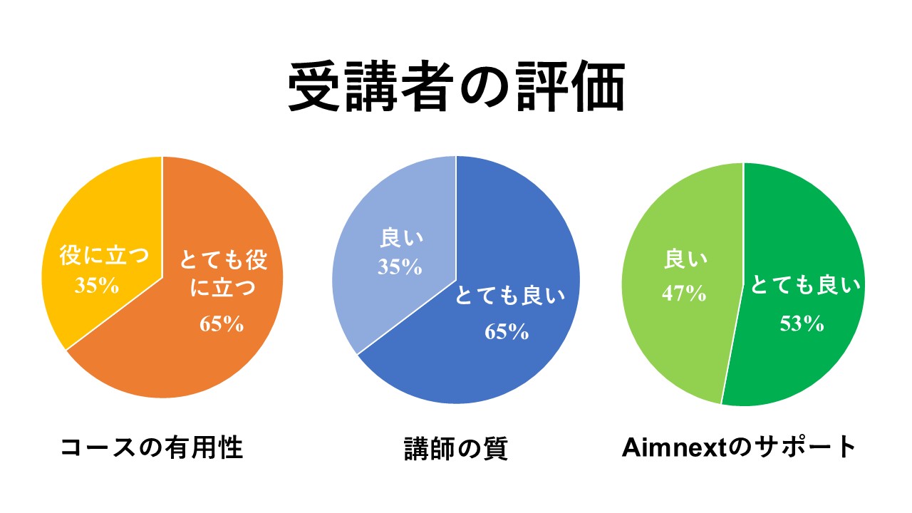 研修後アンケートの結果は、受講者の高い満足度と本プログラムへの信頼を最も明確に示すものとなっています。