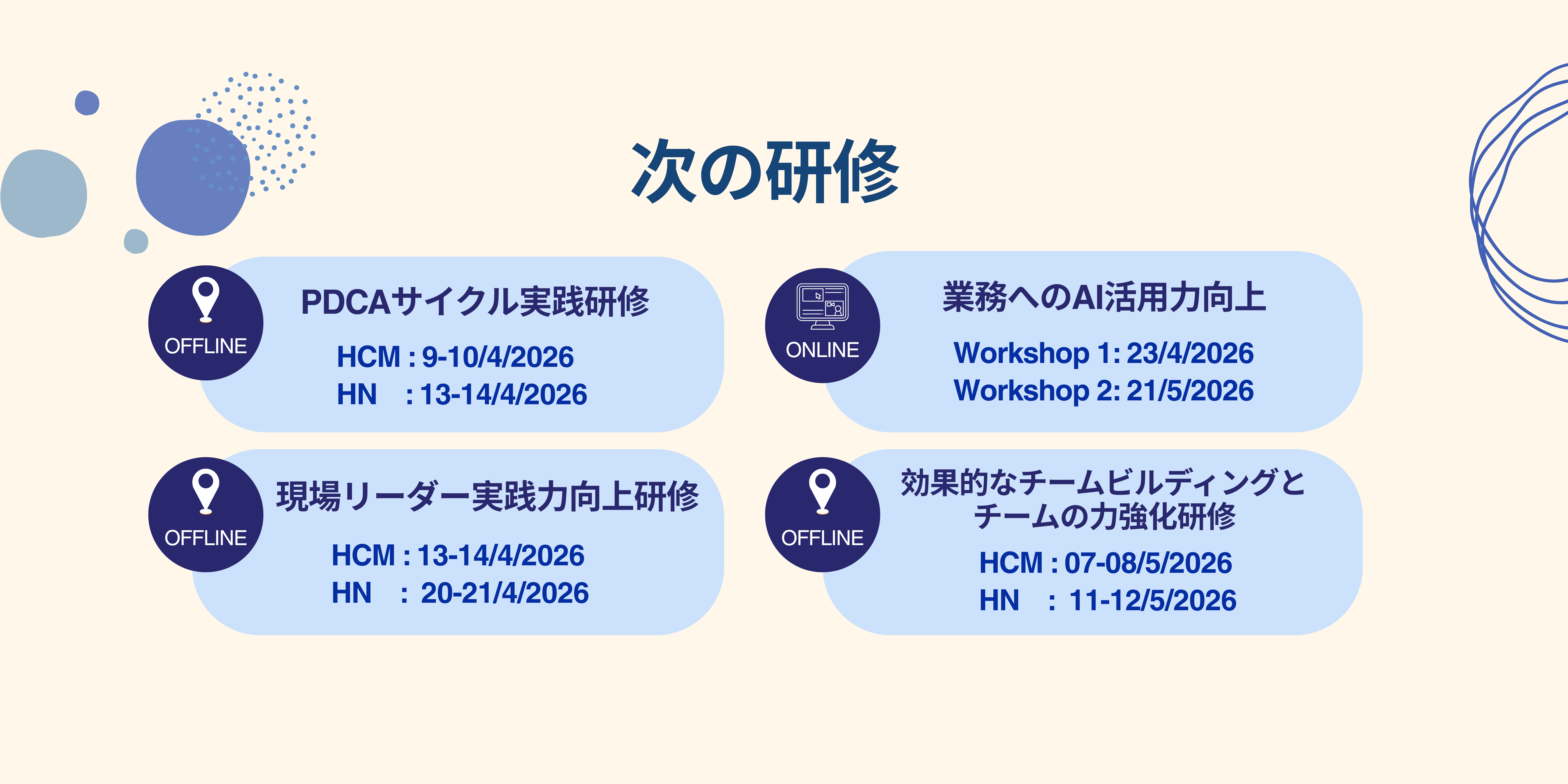 - いつ報告すべきか。どのようにすれば分かりやすく報告できるのか。 - いつ連絡が必要か。どのようにすれば効率的に連絡できるのか。 - いつ相談すべきか。どのようにすればスピーディーかつ成果のある相談ができるのか。 - 報連相をどのように活用すれば、上司や部下とのコミュニケーション課題を解決できるのか。