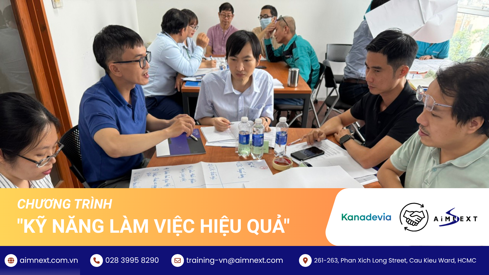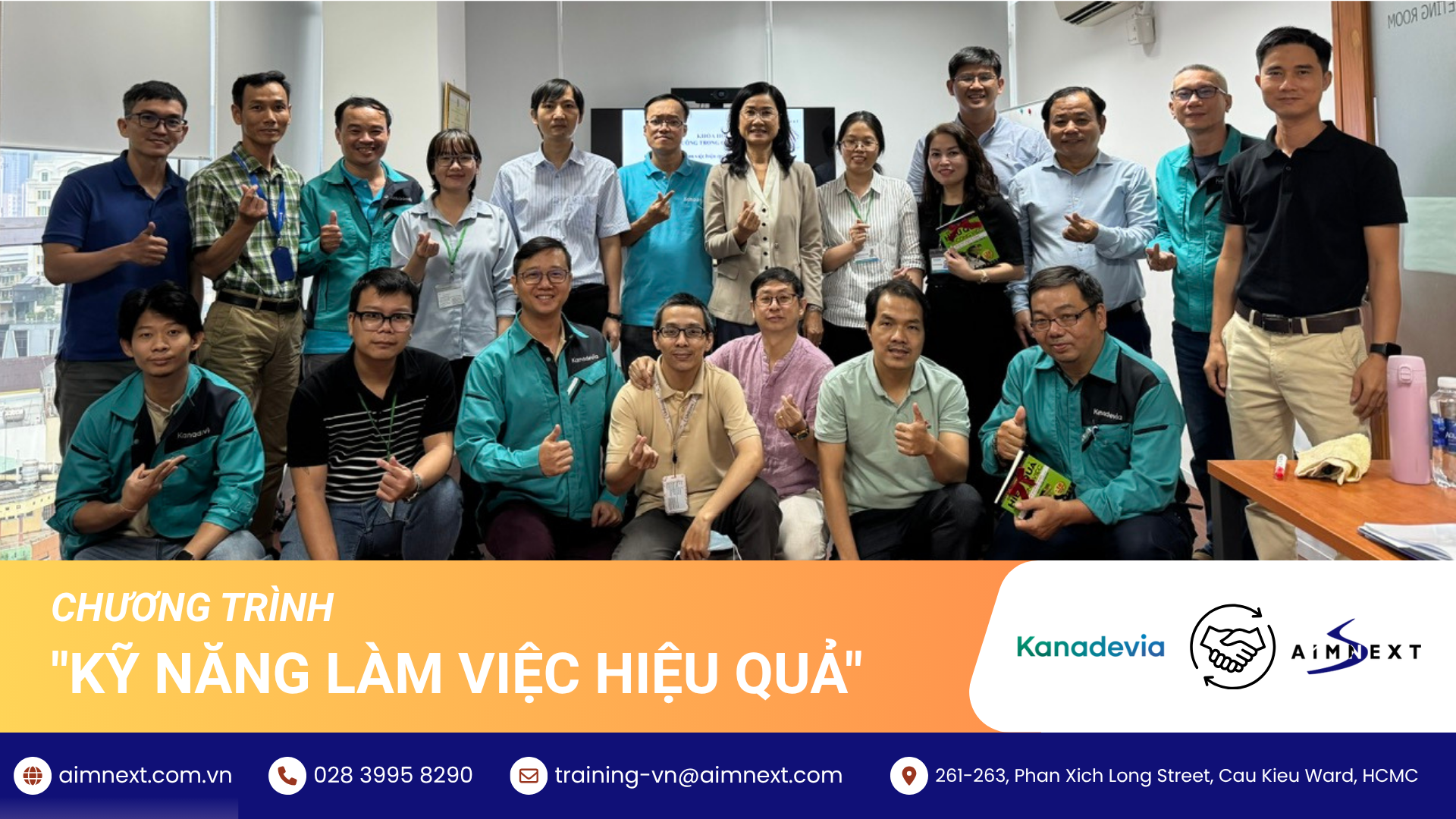 Ngày 06-07/11 vừa qua, AIMNEXT rất vinh hạnh khi được hợp tác cùng Công Ty TNHH Kanadevia Việt Nam tổ chức khóa họcKỹ năng làm việc hiệu quả”, dành cho đội ngũ nhân viên nội bộ.
