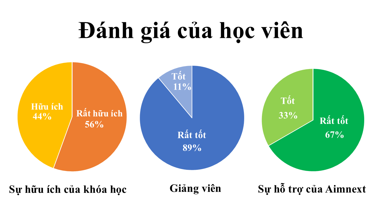 Sau khi khóa học kết thúc đã nhận được những đánh giá rất cao về tính thực tiễn và khả năng truyền đạt của giảng viên. Những con số dưới đây chính là minh chứng rõ ràng nhất cho chất lượng và giá trị mà khóa học mang lại: