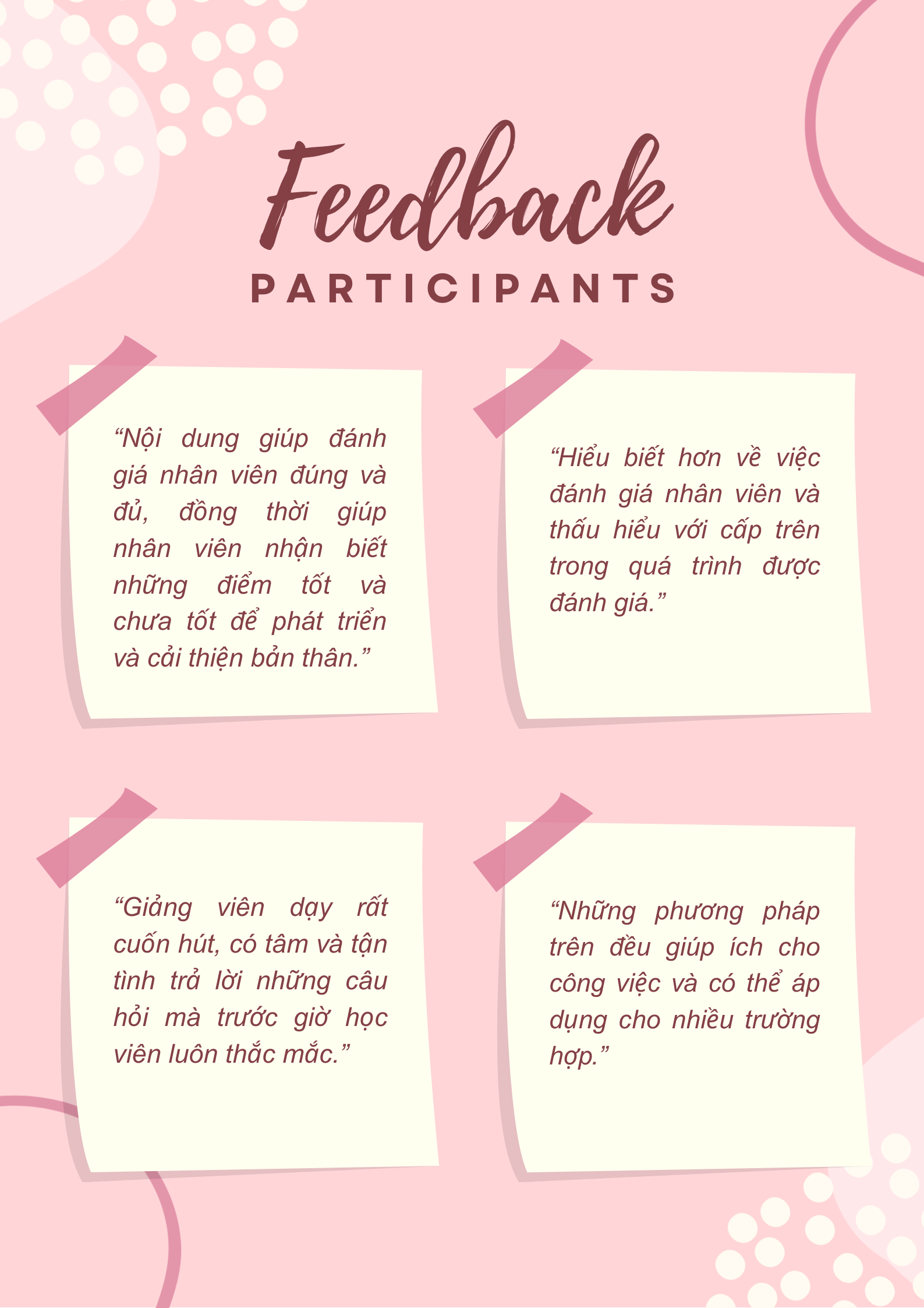 chia sẻ ý nghĩa từ các học viên sau chương
