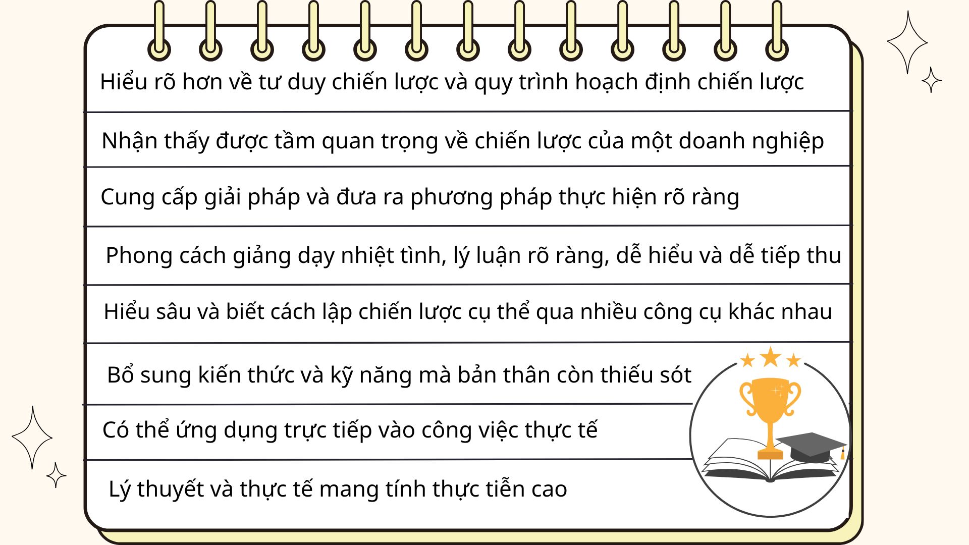 - Tư duy chiến lược chuyển đổi góc nhìn sang tầm nhìn dài hạn và đưa ra các quyết định dự báo chính xác.