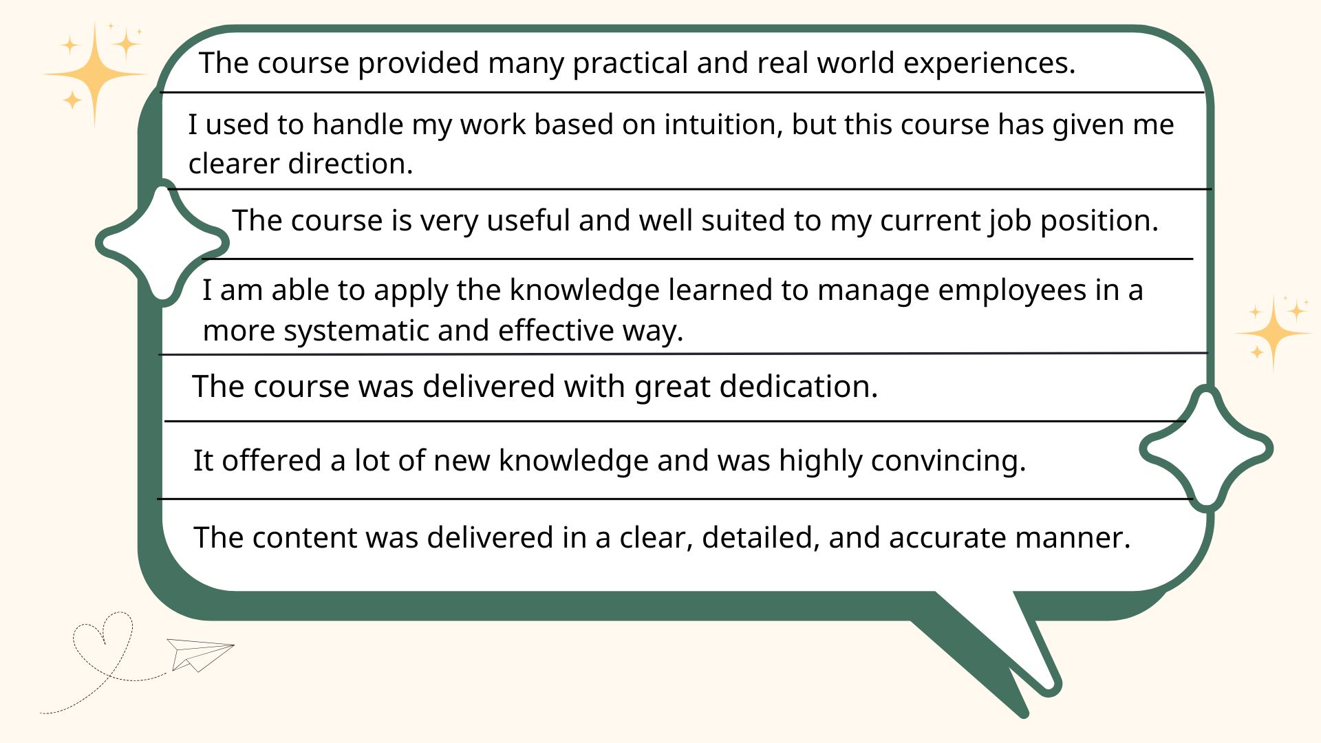 Beyond the impressive figures, the true value of the program is reflected in the heartfelt feedback from participants, those who directly experienced and recognized clear changes in both their mindset and the way they operate after the course: