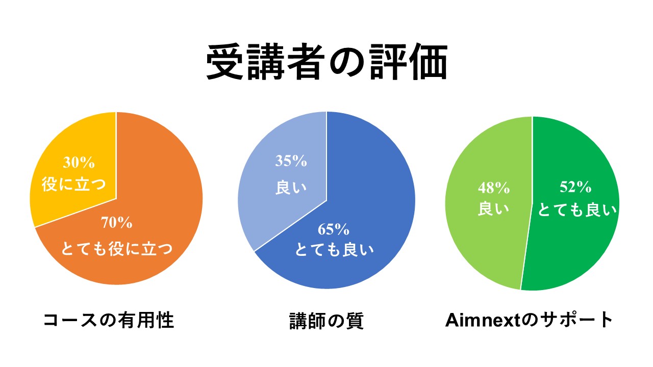 研修終了後には、詳細なアンケートを通じて前向きな評価が寄せられました。以下の結果は、本研修が提供した品質と価値を明確に示すものです。