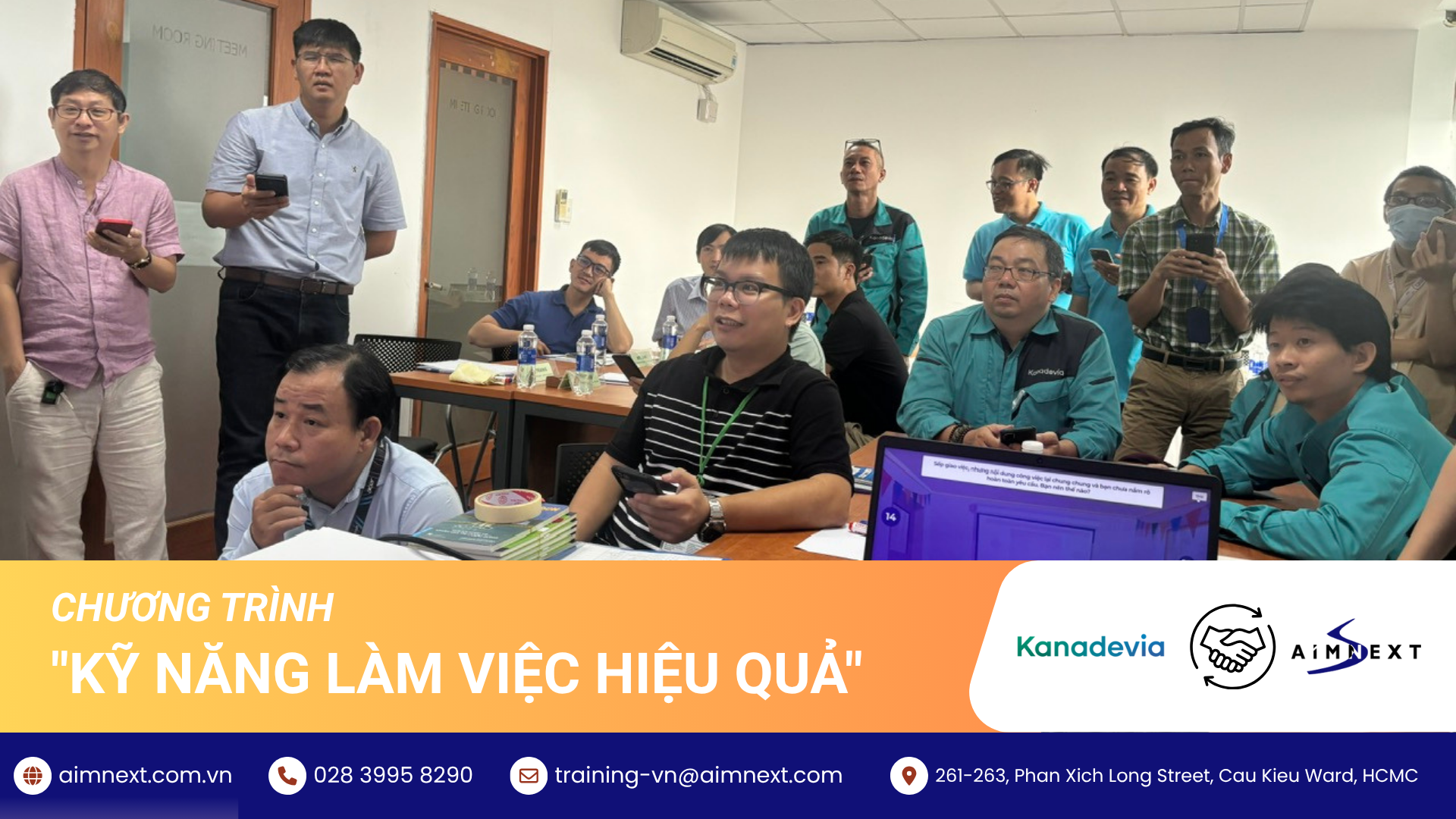 Ngày 06-07/11 vừa qua, AIMNEXT rất vinh hạnh khi được hợp tác cùng Công Ty TNHH Kanadevia Việt Nam tổ chức khóa họcKỹ năng làm việc hiệu quả”, dành cho đội ngũ nhân viên nội bộ.