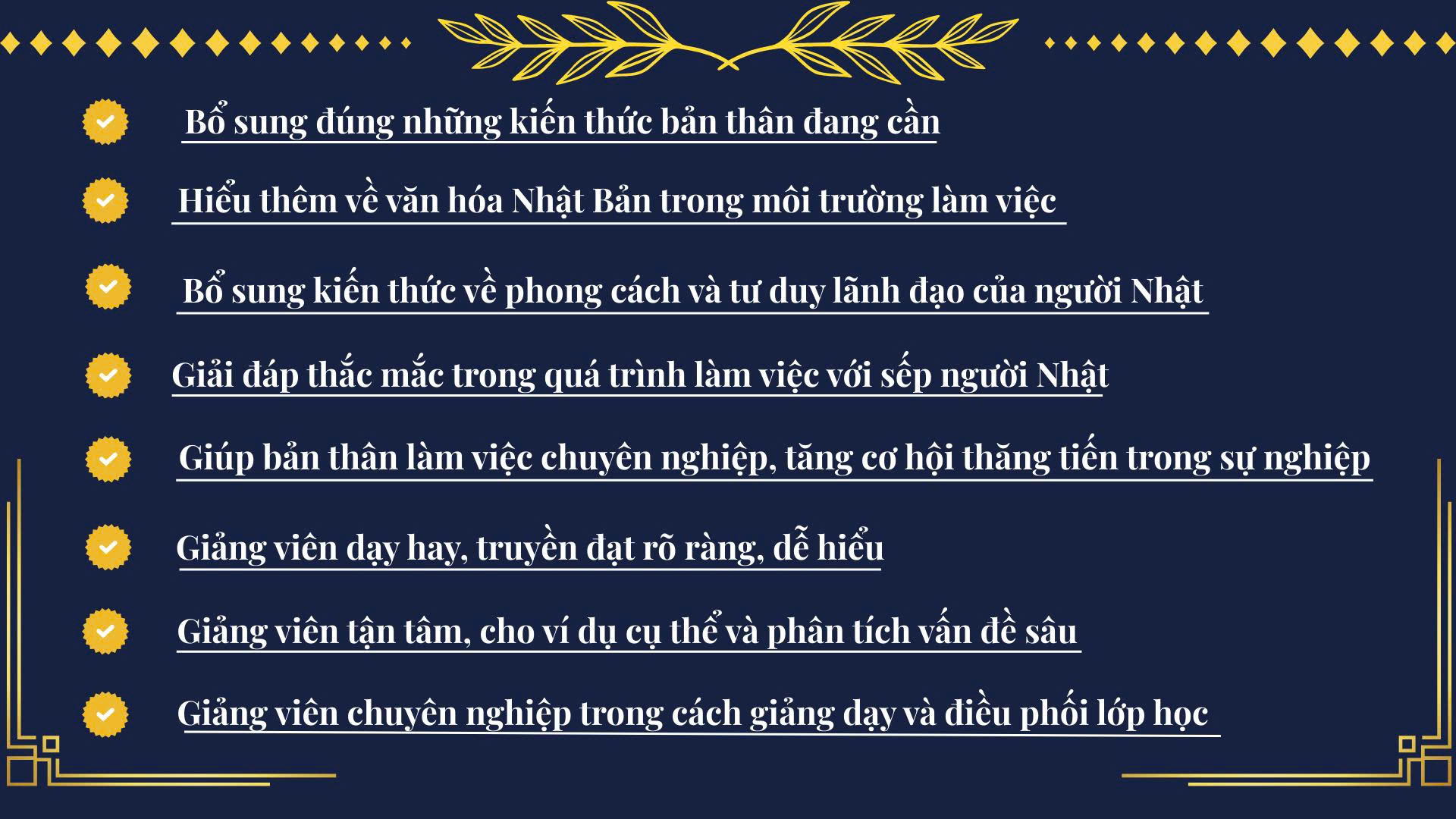 - Hiểu rõ văn hóa và kỳ vọng của cấp trên người Nhật, nắm bắt sự khác biệt trong tư duy và hành động giữa hai nền văn hóa Việt – Nhật.